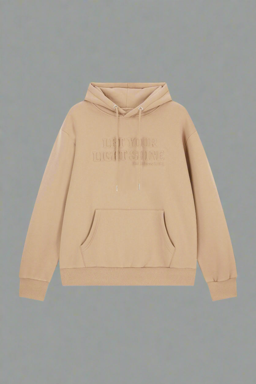 This premium unisex hoodie is more than just cozy—it’s a statement. The front features a striking embossed print of the uplifting message "Let your light shine – Matthew 5:16," while the back showcases a beautifully crafted moon and sun motif, symbolizing balance and radiance, alongside the Moonnsunsetz brand name. Designed for those who want to express faith, positivity, and style in one effortless piece.